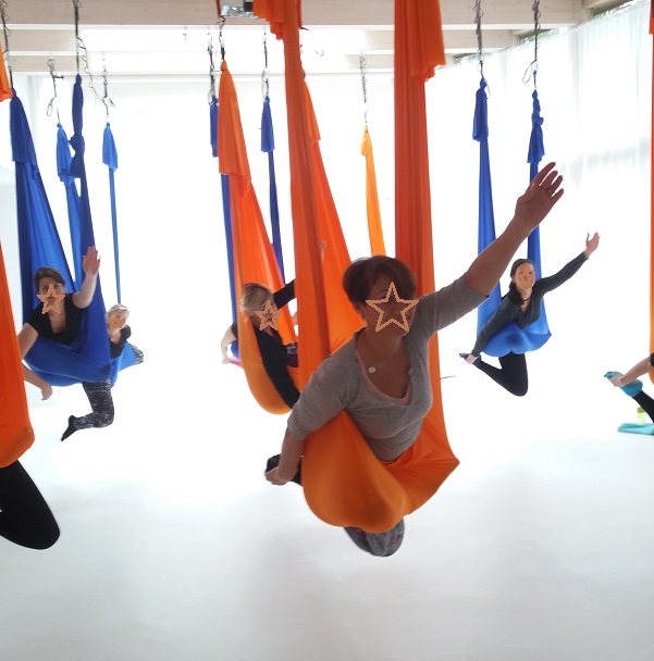 - Aerial Krieger: schwebende Variationen der Yoga-Krieger. Stärkt und löst Verspannungen!